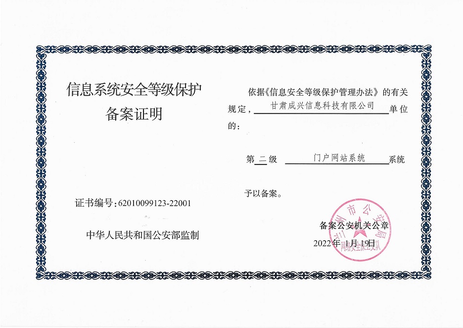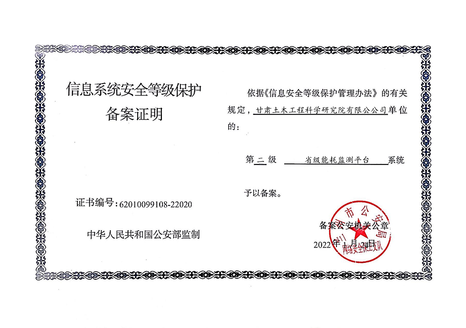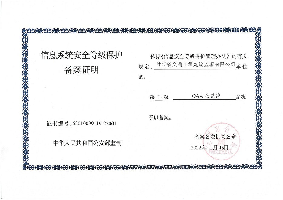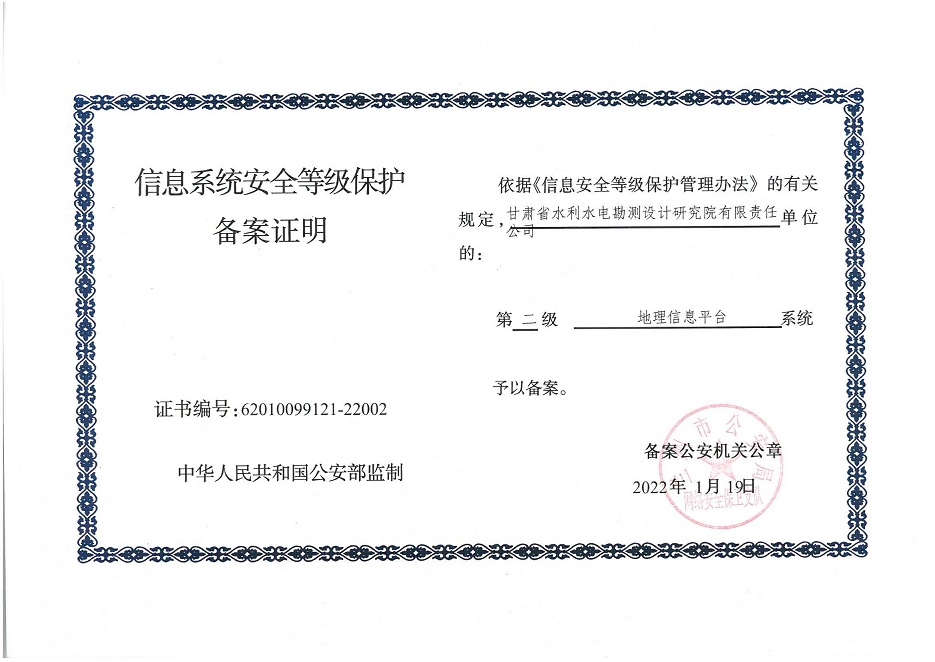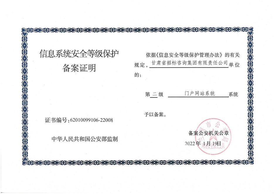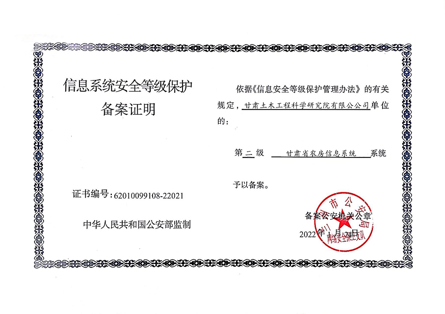 甘肃工程咨询集团股份公司信息系统通过安全等级保护2.0备案认证