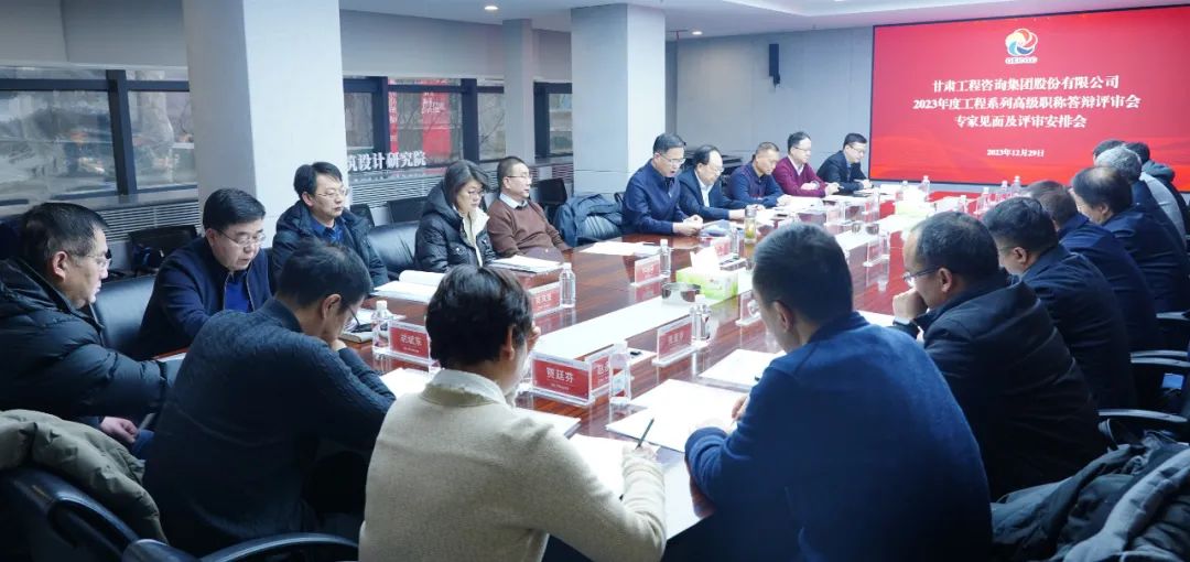 12月29日,甘肃工程咨询集团工程系列专业技术中、高级职称任职资格评审会议在省建筑设计院召开。集团公司党委书记、董事长、高评会主任委员马明,党委副书记、总经理、高评会副主任委员张佩峰,党委委员、监事会主席、高评会副主任委员焦军毅出席会议,部分高校教授和子公司工程系列具有正高级职称的专家担任评委。
