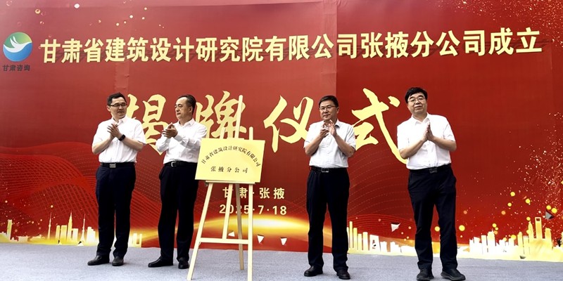 7月18日,甘肃省建筑设计研究院有限公司张掖分公司揭牌仪式在张掖举行。甘肃工程咨询集团党委委员、副总经理成少平,甘州区委常委、副区长梁天祯出席仪式并讲话。甘肃省勘察设计大师、甘肃工程咨询集团总工程师冯志涛出席。