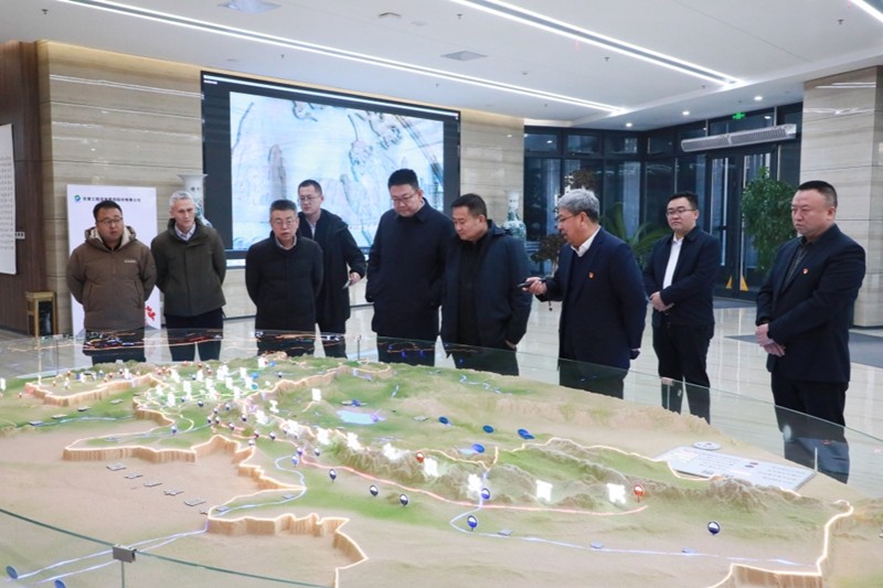 李文生一行实地察看了省水电设计院鱼儿沟科研设计基地,现场观摩了甘肃省水网建设沙盘演示。