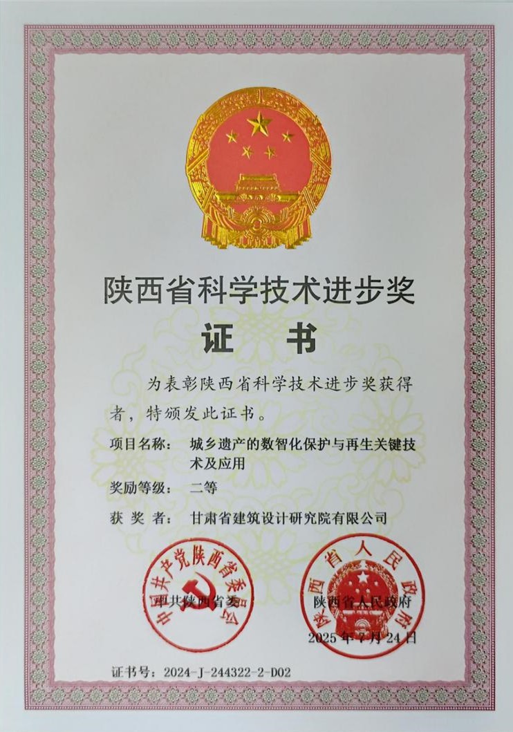 近日,由省建筑设计院主要参与完成的《城乡遗产的数智化保护与再生关键技术及应用》项目凭借其在城乡历史文化遗产保护领域的科技创新,荣获陕西省科技进步二等奖。