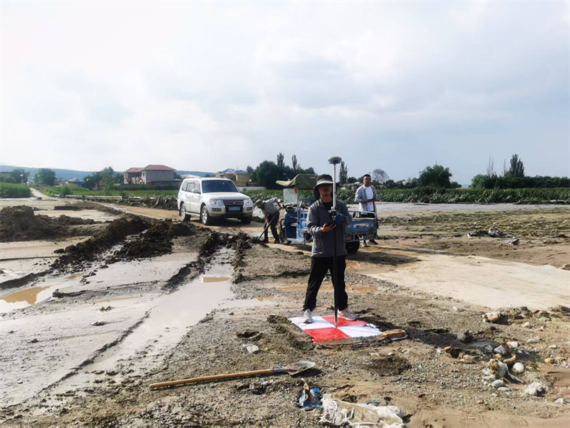 他正利用无人机对河道及沿线进行扫描,将其与灾前卫星图进行精确比对,从而为榆中泥石流灾害后的受灾情况分析提供关键数据支撑。突然,陈利斌眉头一紧,迅速将测量仪器装进工具箱,果断跳下河道:“快!无人机定位有偏差,需要人工建立校准坐标。公路上没条件,沿河道找平地!”