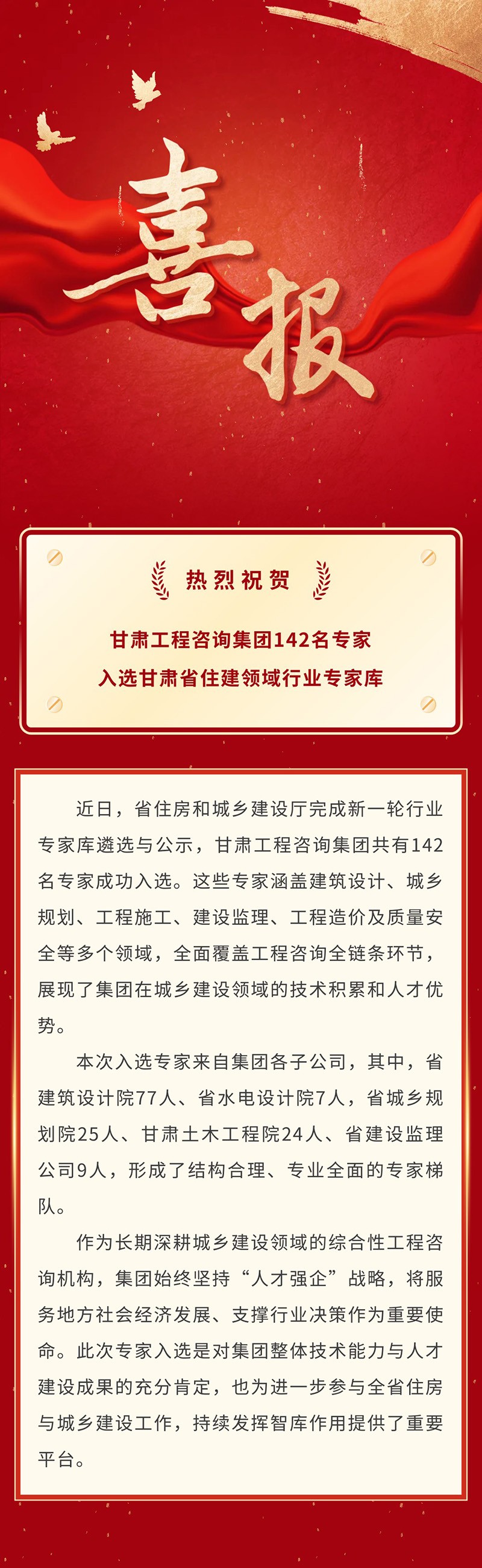 喜报 | 甘肃工程咨询集团142名专家入选甘肃省住建领域行业专家库