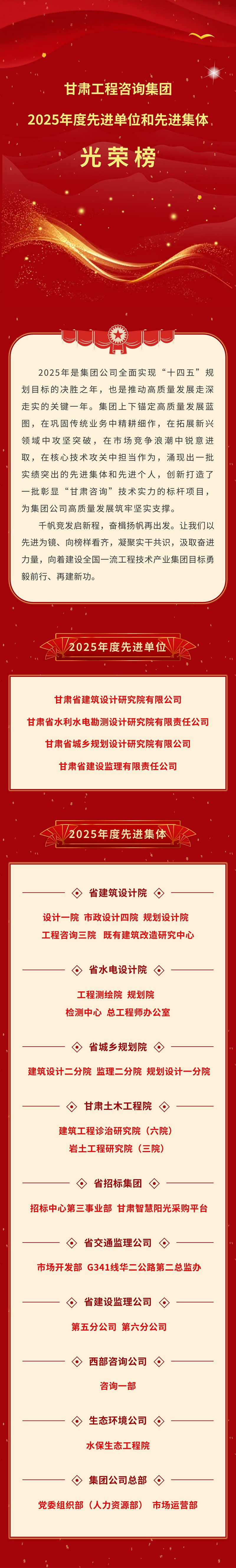 光荣榜① | 甘肃工程咨询集团2025年度先进单位和先进集体
