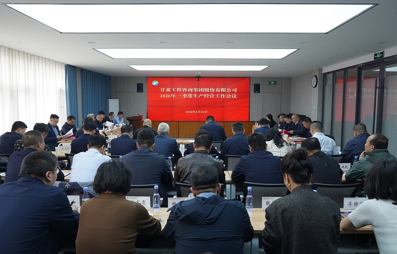 4月10日,甘肃工程咨询集团召开2026年一季度生产经营工作会议,总结一季度生产经营和清收欠款工作成效,分析当前形势,查找问题短板,安排部署下阶段生产经营重点工作任务。集团公司总经理、董事陈一夫出席会议并讲话,副总经理曹庆出席会议,党委委员、副总经理贾志坚主持会议。