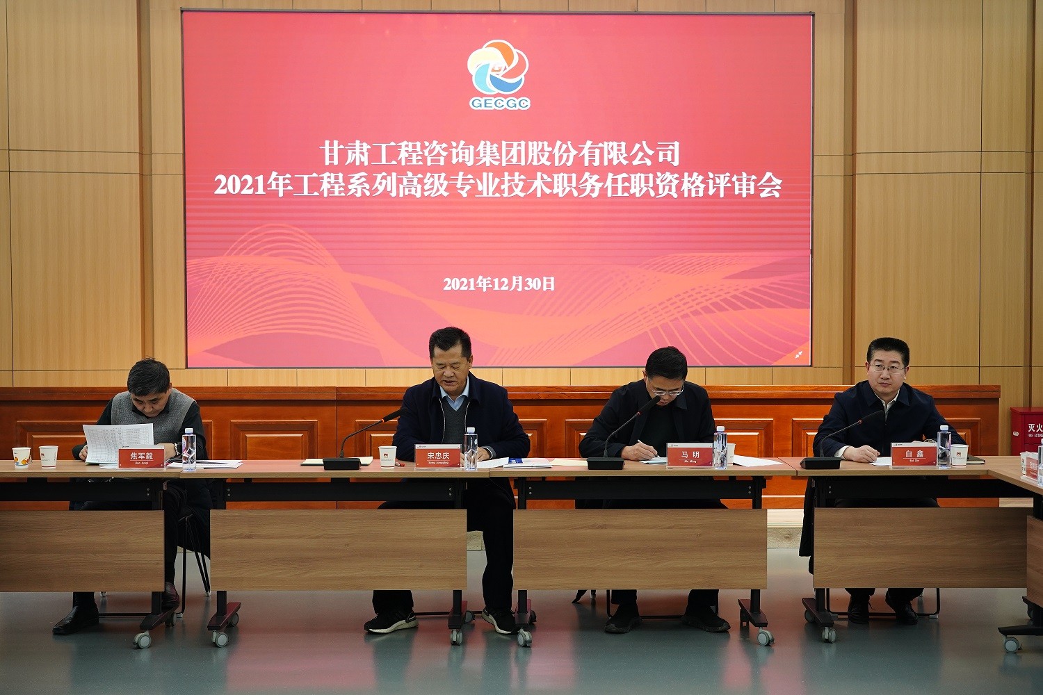 12月30日,甘肃工程咨询集团召开2021年工程系列高级专业技术职务任职资格答辩测评及评审会(代评中级),集团公司党委书记、董事长、高评会主任委员宋忠庆,集团公司党委副书记、总经理、高评会副主任委员马明,集团公司党委委员、监事会主席、高评会副主任委员焦军毅,评委会专家及集团公司高评会办公室、纪委,建筑设计院相关人员参加。