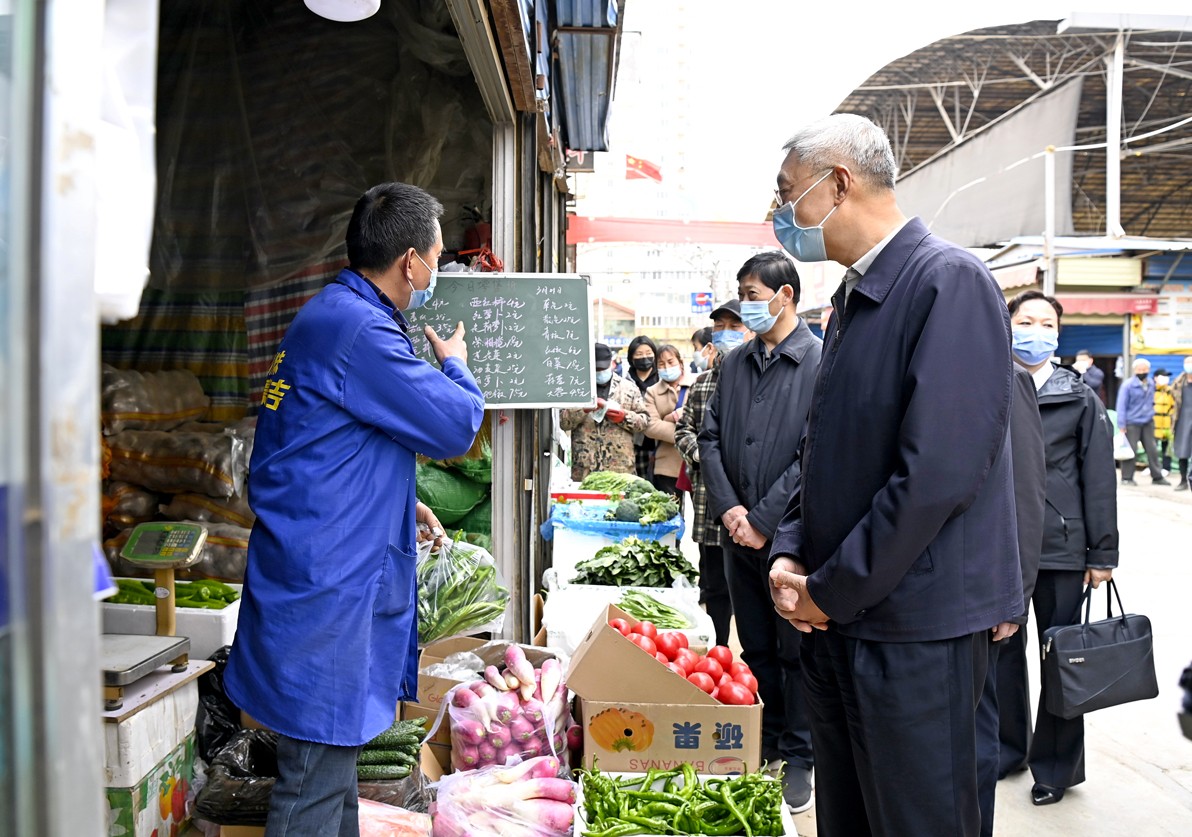 尹弘强调,要再接再厉、迎难而上,坚决管住社会面风险点,重点做好学校、社区、公共交通工具、公共场所、机关事业单位的防控。加强“两站一场”、公路卡点的力量,严格对农贸市场、冷链物流、快递包裹、进口货物等的管理,守牢“外防输入”防线。要把物资保供稳价作为疫情防控的基础和关键来抓,切实加强防疫物资、生产物资和生活必需品的调度和供应,做好销售、配送等各环节的防护,确保各类物资市场供应充足、价格平稳、运送安全。要全力保障群众基本需求,及时帮助解决急难问题,特别是老人、儿童、孕产妇、危重症患者和其他特殊群体的就医需求,保持就医通道畅通。要发挥好各级各类医疗机构“哨点”预警作用,对异常情况严格登记、第一时间上报。要抓好新版诊疗方案的业务培训和宣传解读,严格落实“四集中”要求,坚持中西医结合,科学救治患者。要教育引导群众遵守防疫要求、加强自我防护,筑牢群防群控防线。要更加关心关爱持续奋战在抗疫一线的工作人员,切实帮助解决后顾之忧,让大家全身心投入抗疫。