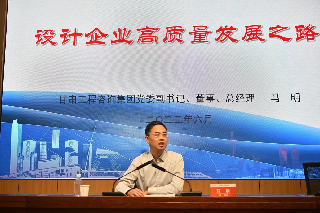 6月9日,在甘肃省建筑设计研究院有限公司喜迎建院70周年华诞之际,集团公司党委副书记、总经理马明受邀以《设计企业高质量发展之路》为题作专题讲座。集团公司经理层成员、各部门主要负责人及兄弟单位主要领导,建筑设计院领导班子成员、全体中层干部聆听讲座。