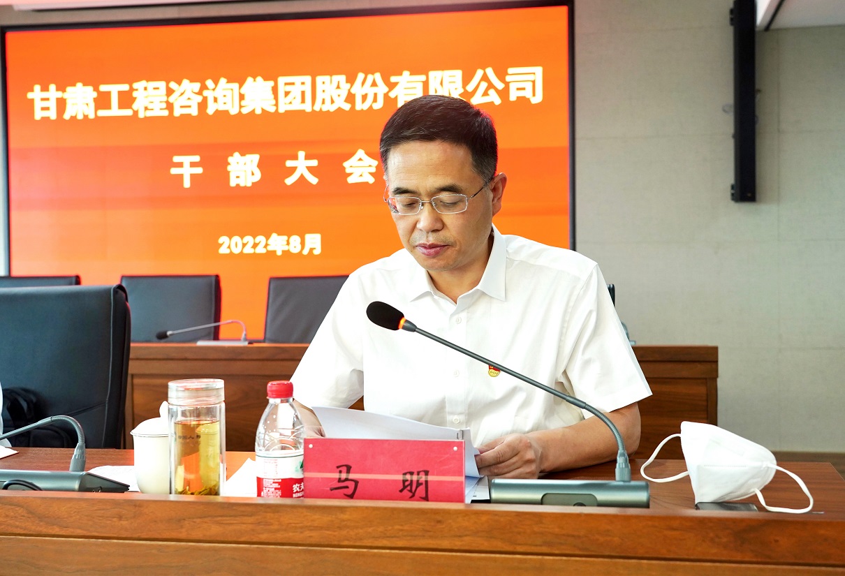8月2日,甘肃工程咨询集团召开干部大会,宣布省委关于集团党委主要负责人任免决定:马明同志任甘肃工程咨询集团股份有限公司党委书记,宋忠庆同志不再担任甘肃工程咨询集团股份有限公司党委书记职务。