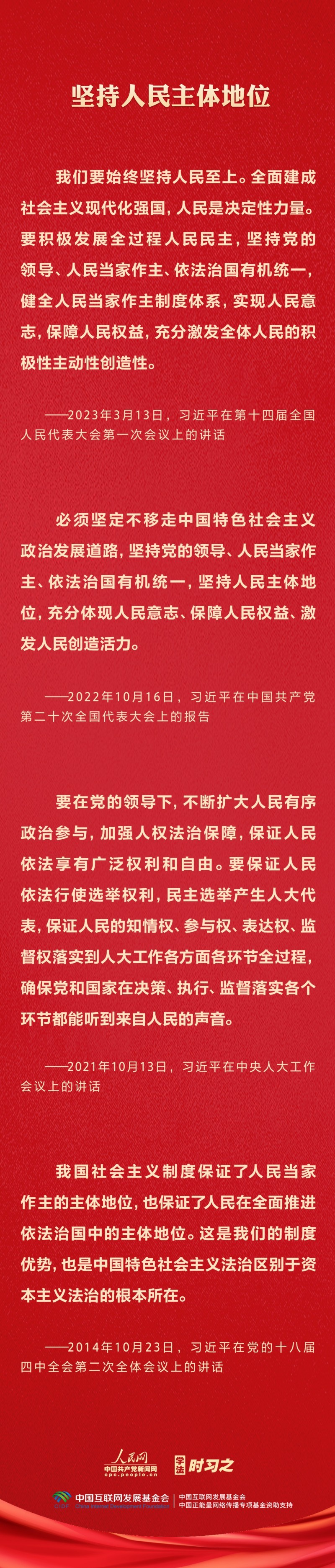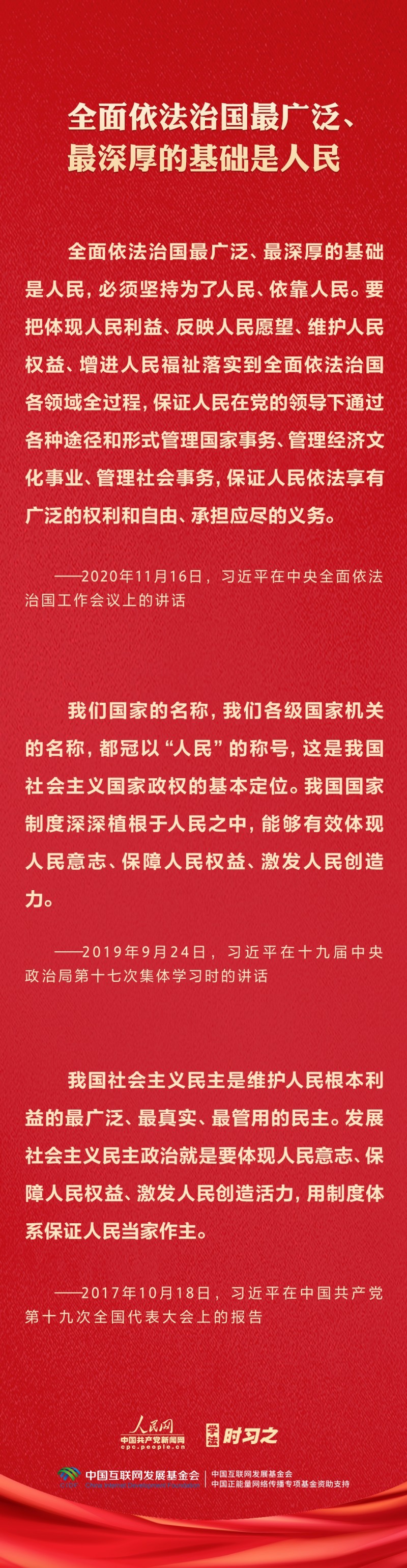今年是贯彻落实党的二十大精神的开局之年。中共中央政治局决定从今年4月开始,在全党自上而下开展学习贯彻习近平新时代中国特色社会主义思想主题教育。习近平法治思想是习近平新时代中国特色社会主义思想的重要组成部分,人民网·中国共产党新闻网推出学法时习之·学习习近平法治思想系列策划,本篇聚焦“坚持以人民为中心”。