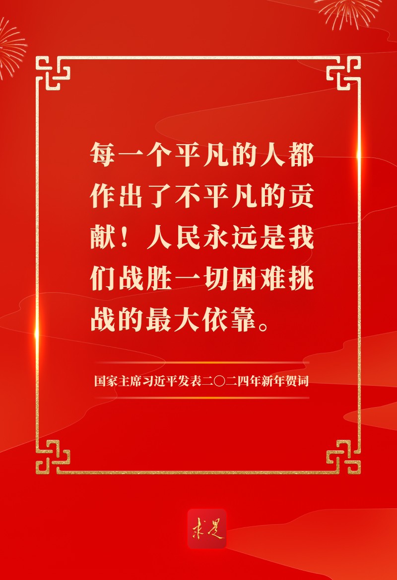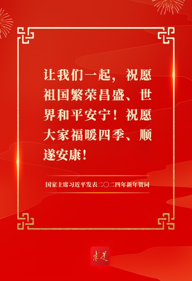 新年前夕,国家主席习近平发表了二〇二四年新年贺词。一起来看金句!