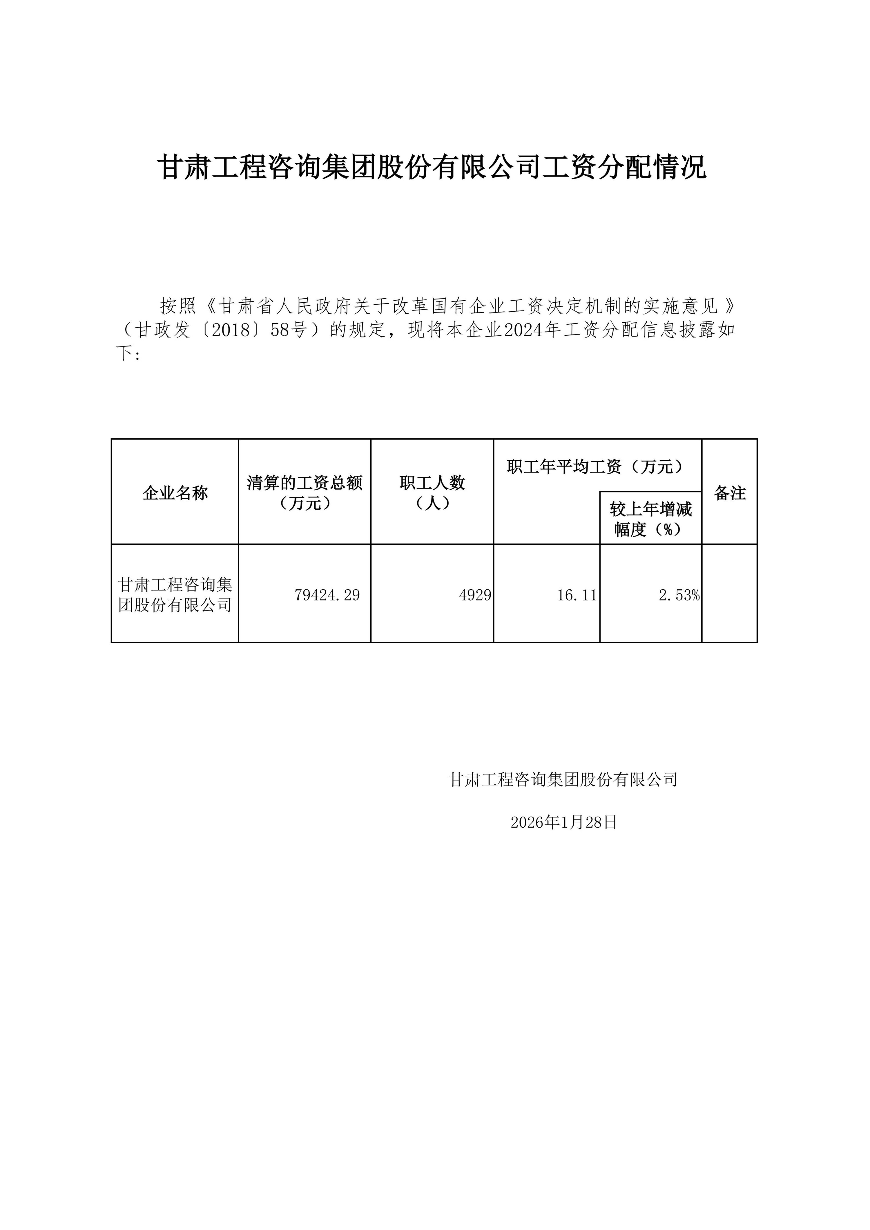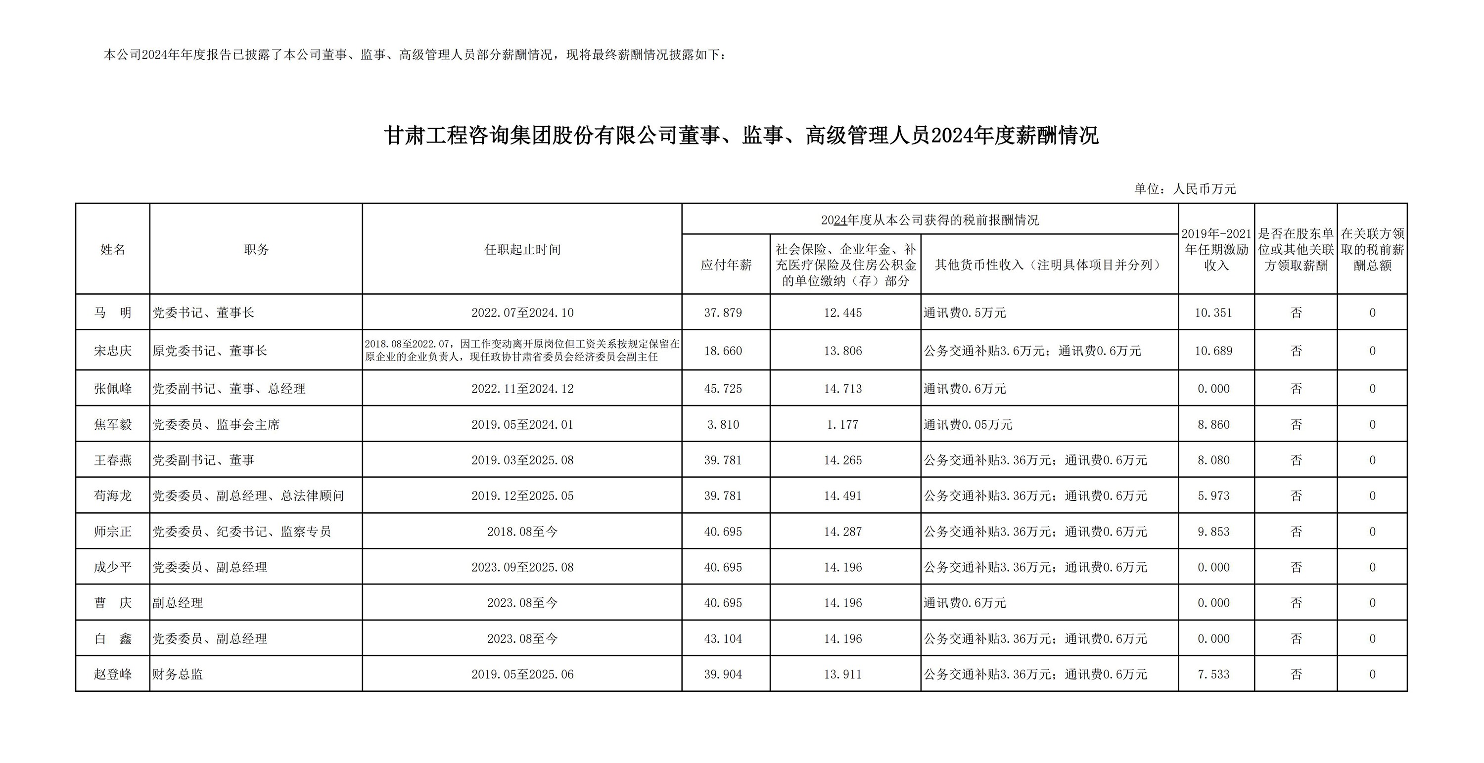 甘肃工程咨询集团股份有限公司董事、监事、高级管理人员2024年度薪酬情况及甘肃工程咨询集团股份有限公司工资分配情况