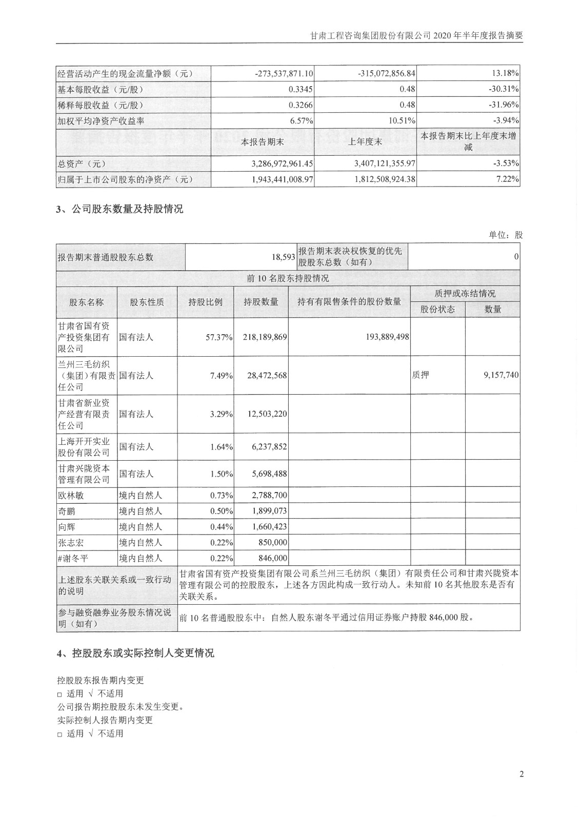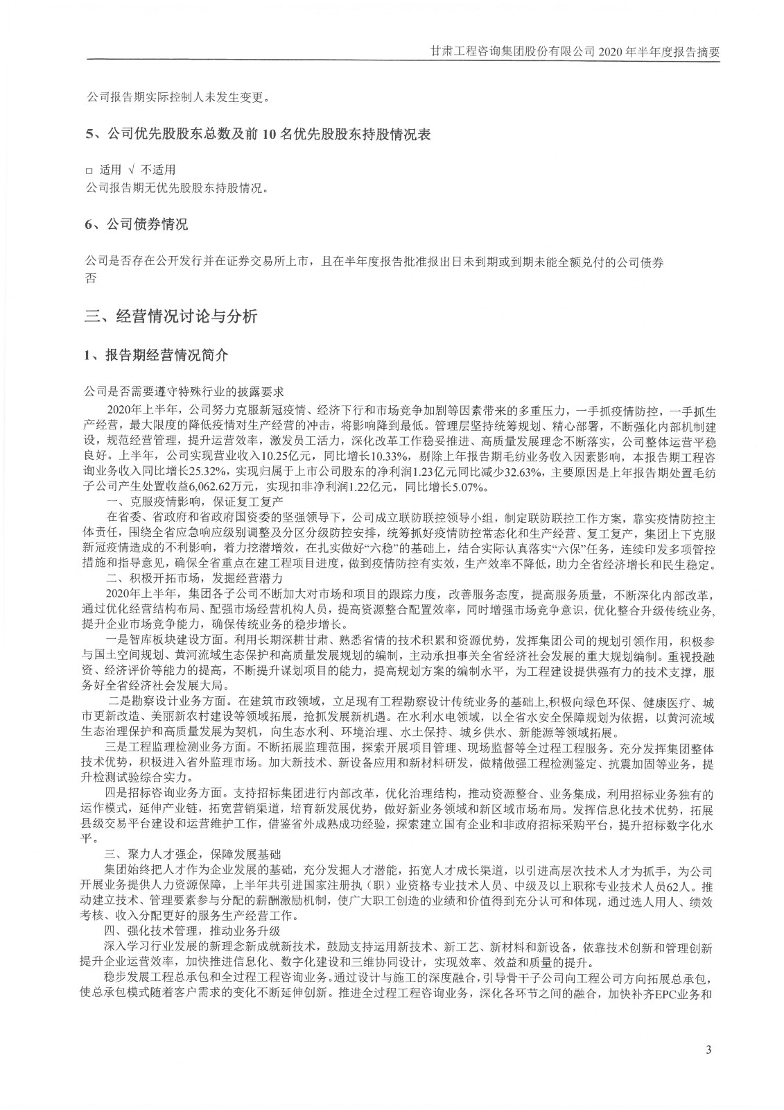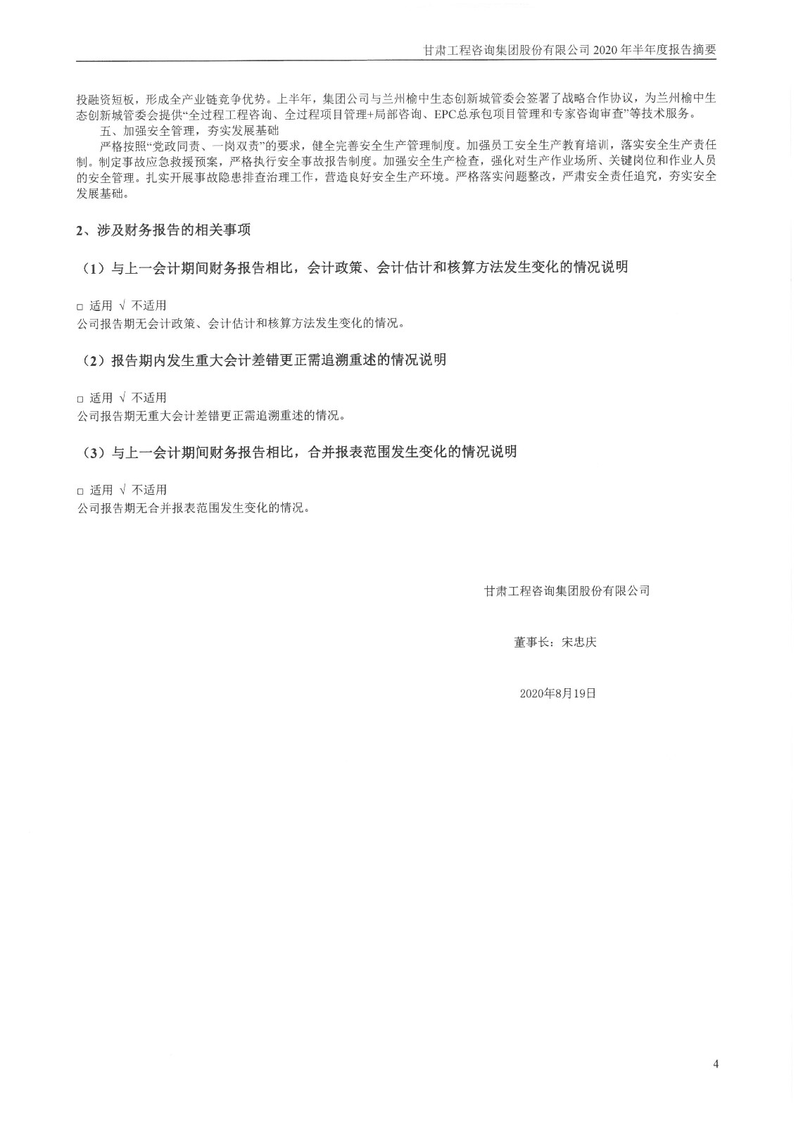 甘肃工程咨询集团股份有限公司2020年半年度报告摘要