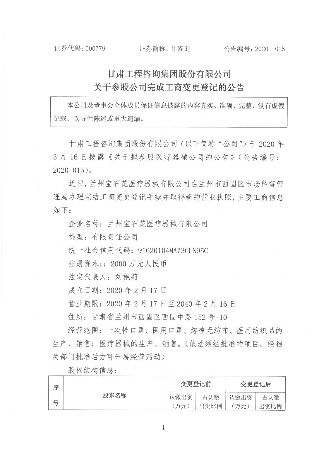 关于参股公司完成工商变更登记的公告
