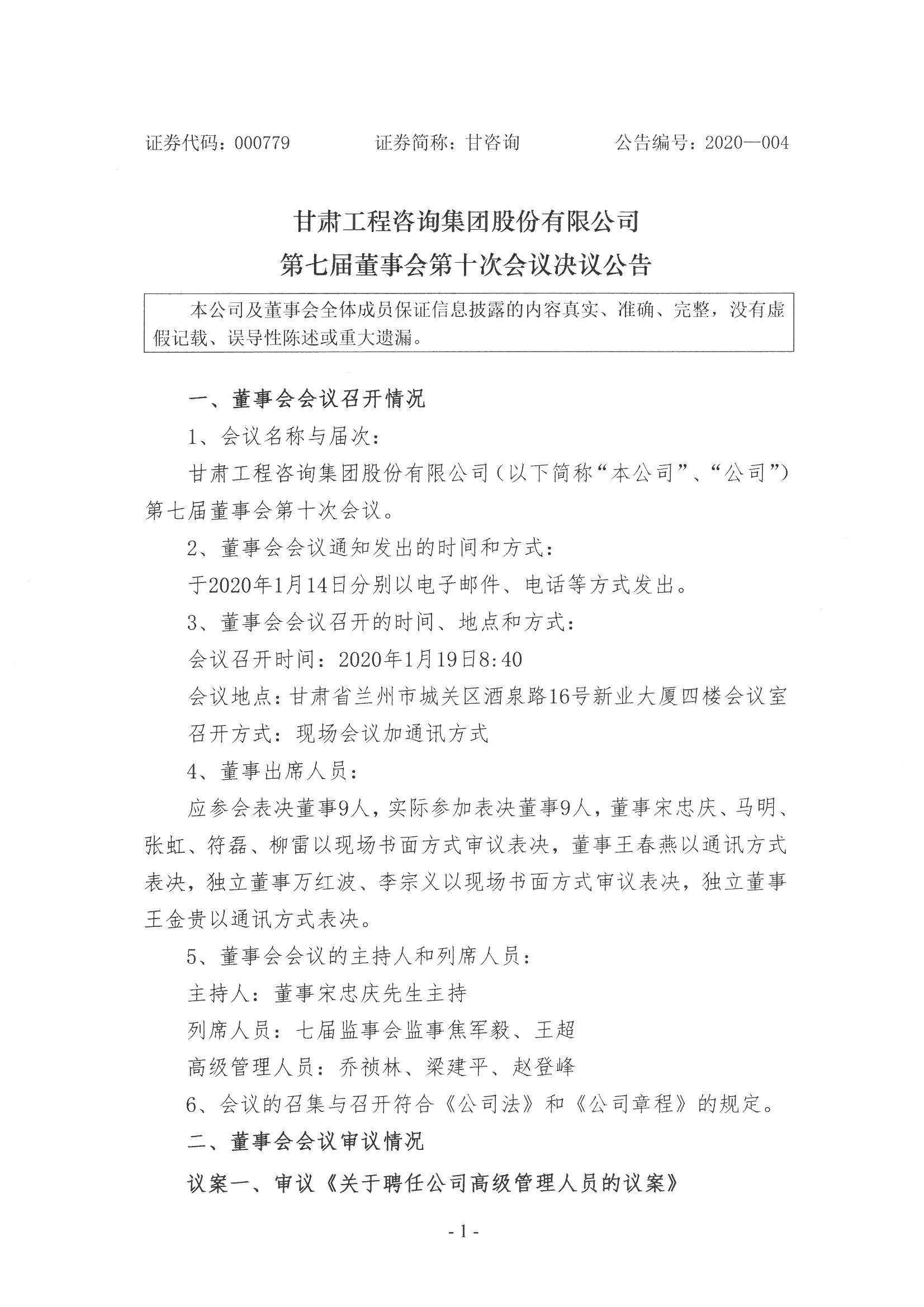 第七届董事会第十次会议决议公告