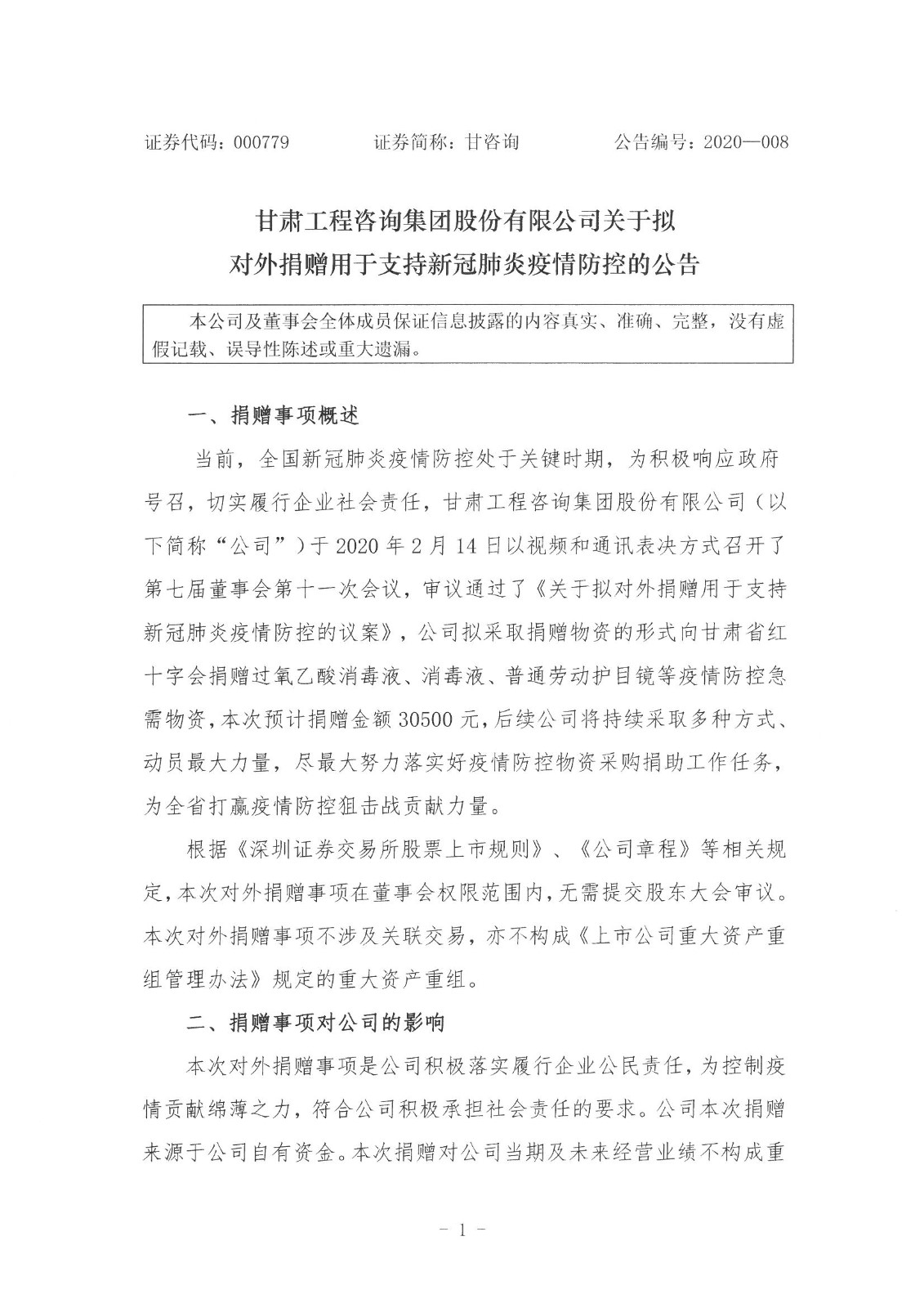 关于拟对外捐赠用于支持新冠肺炎疫情防控的公告