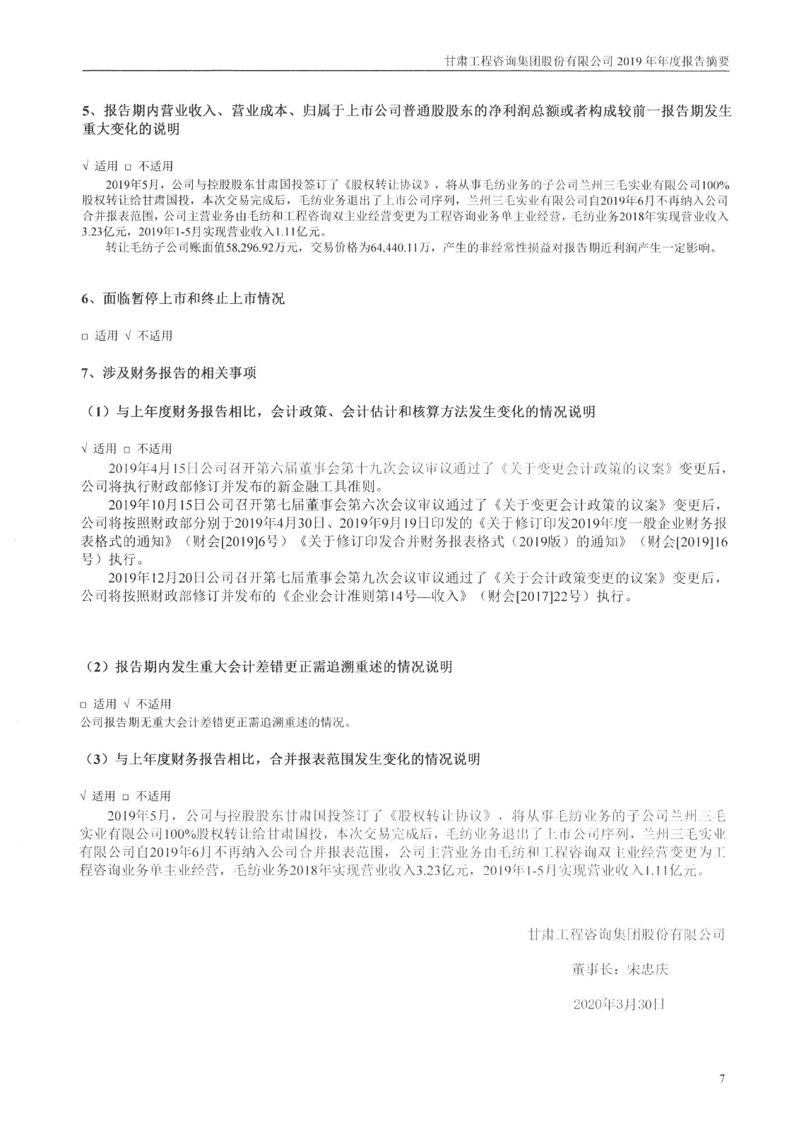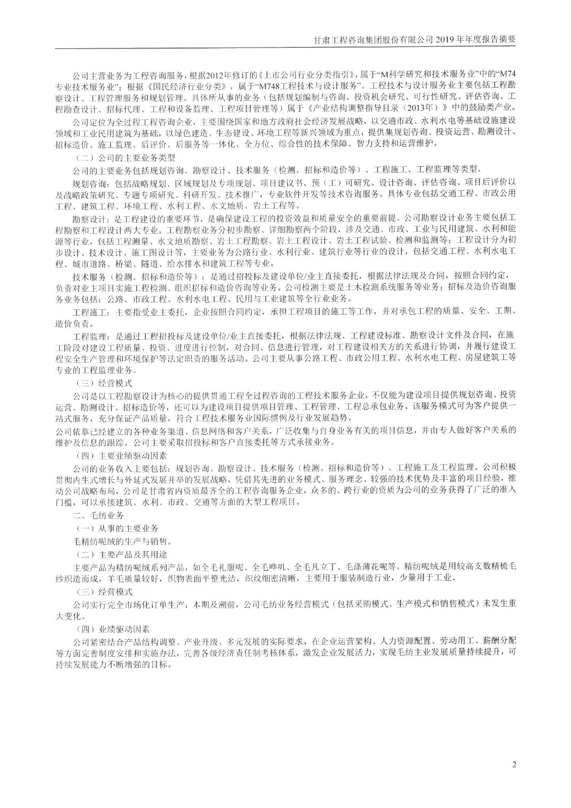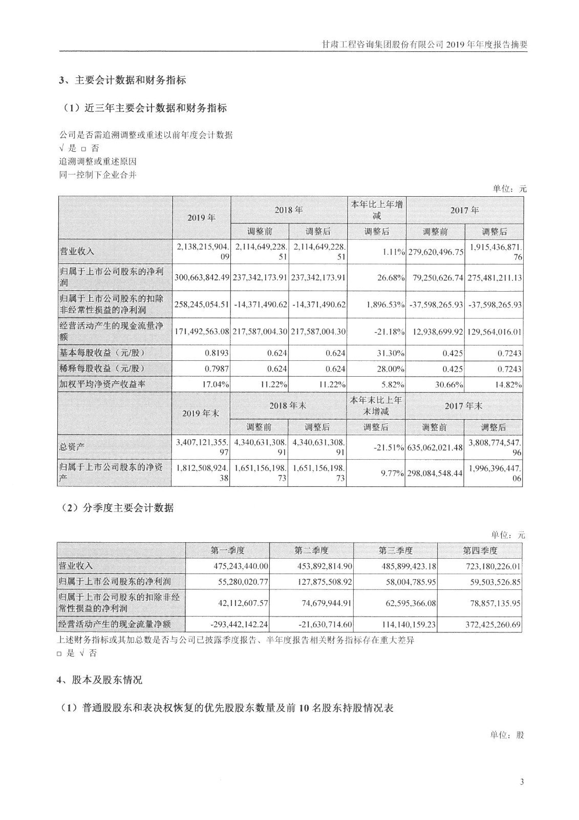 甘肃工程咨询集团股份有限公司2019年年度报告摘要