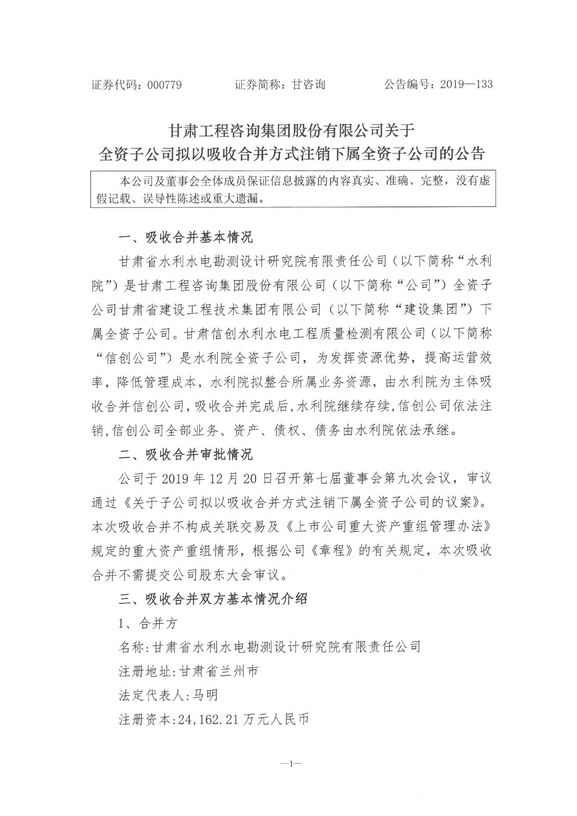 全资子公司拟以吸收合并方式注销下属全资子公司的公告