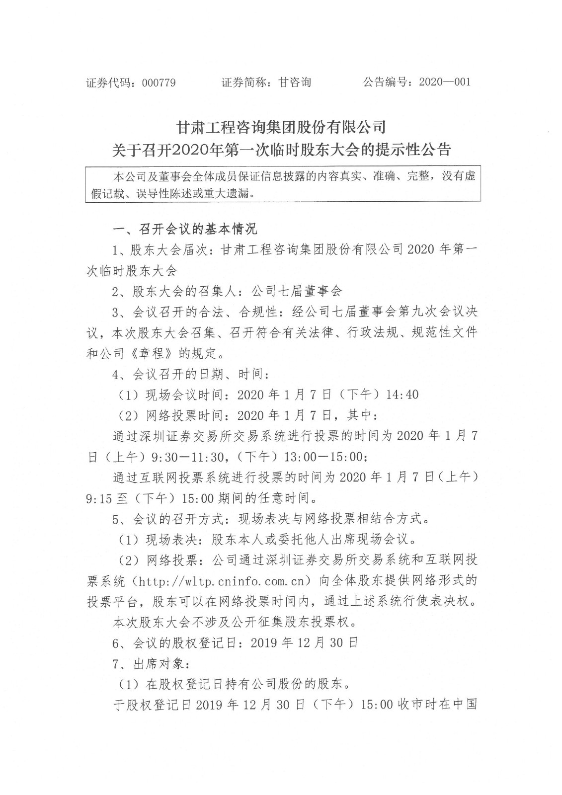 关于召开2020年第一次临时股东大会的提示性公告