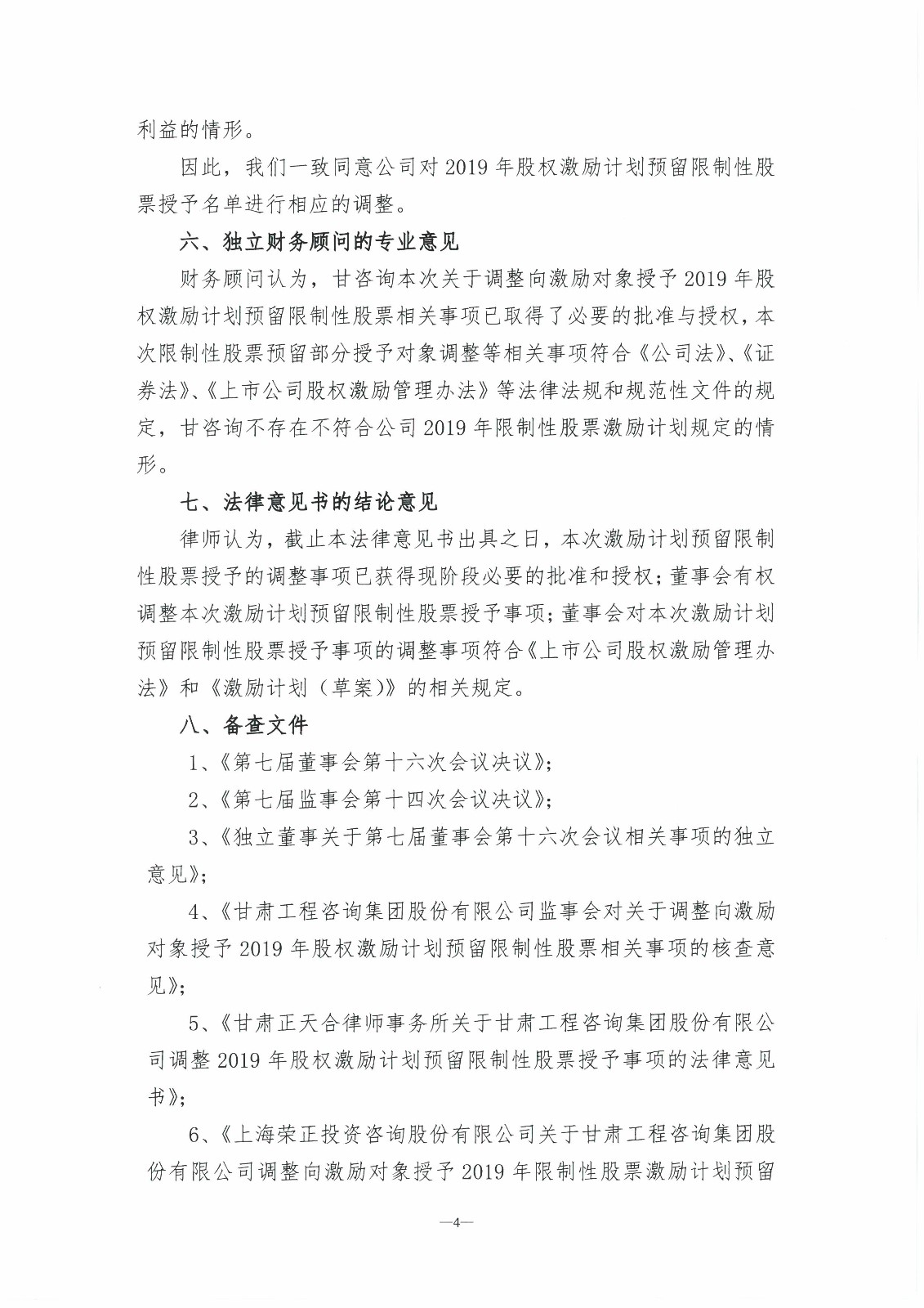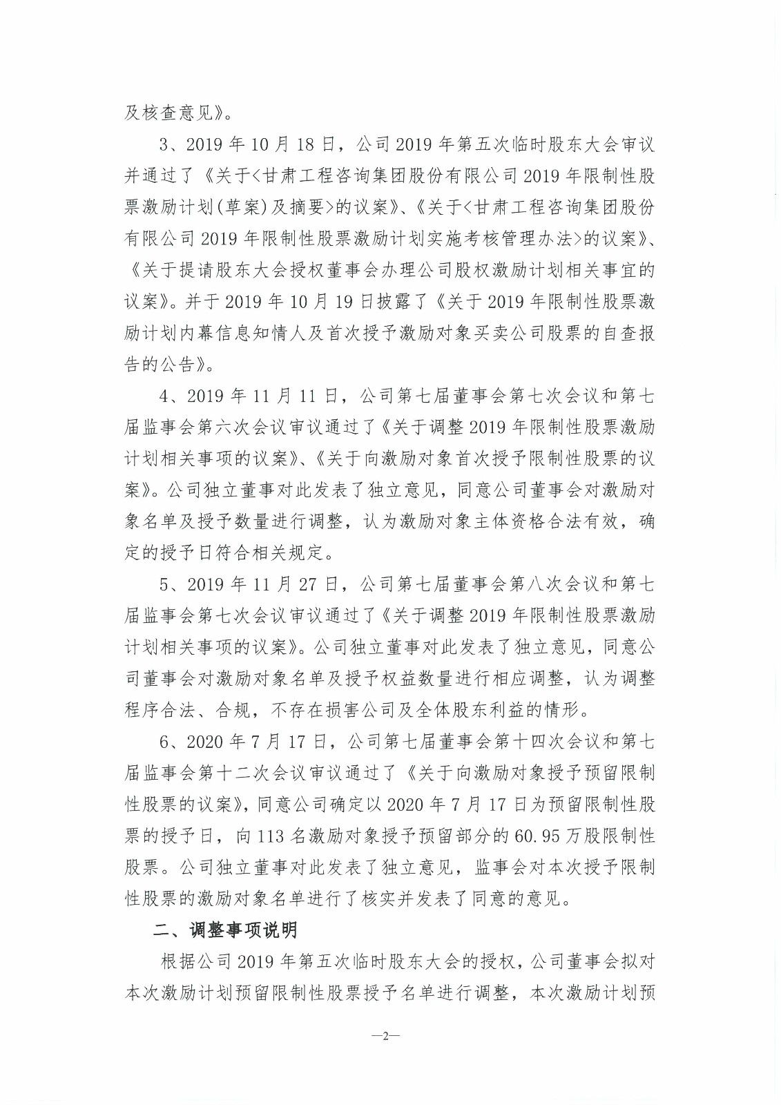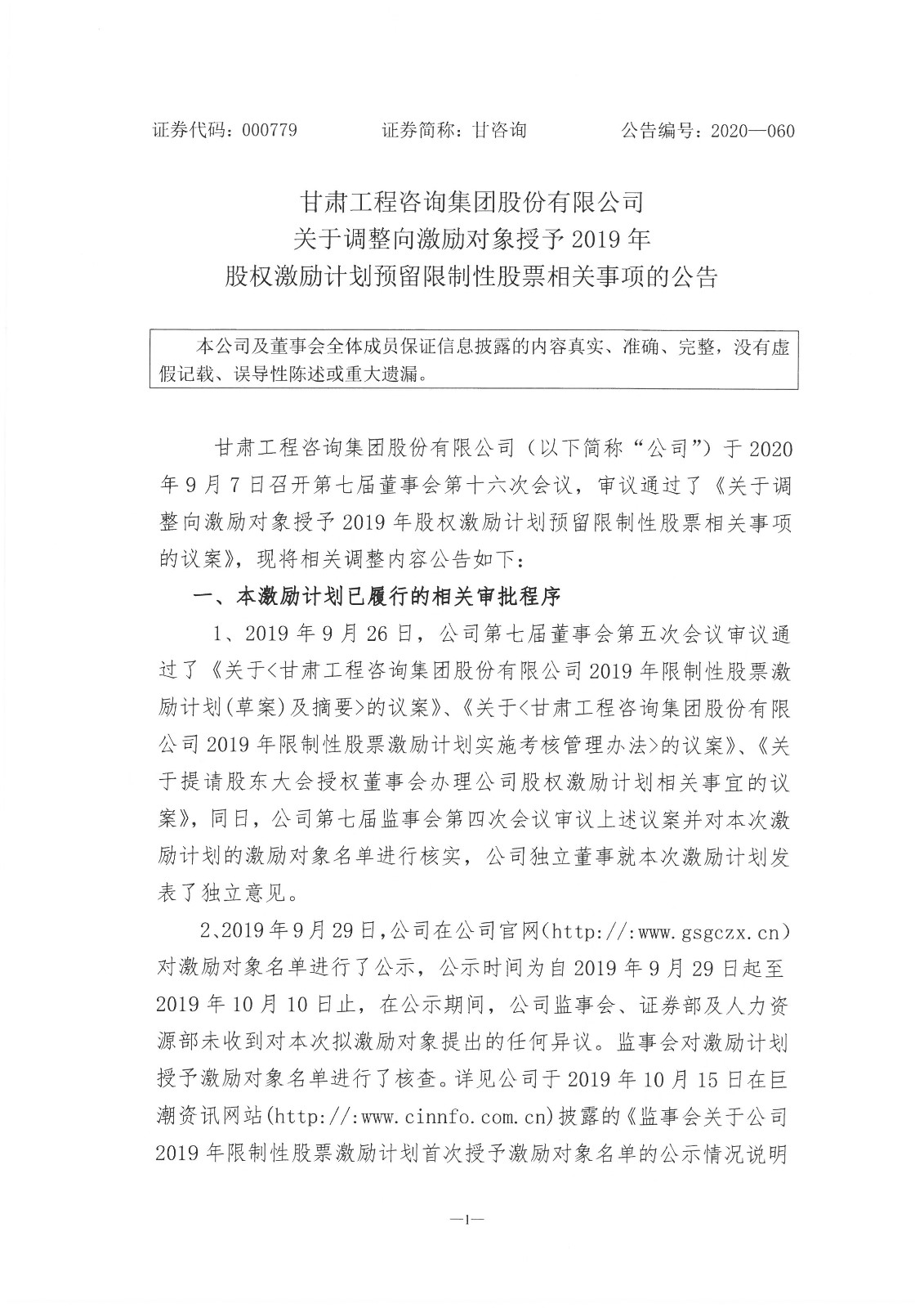 甘肃工程咨询集团股份有限公司关于调整向激励对象授予2019年